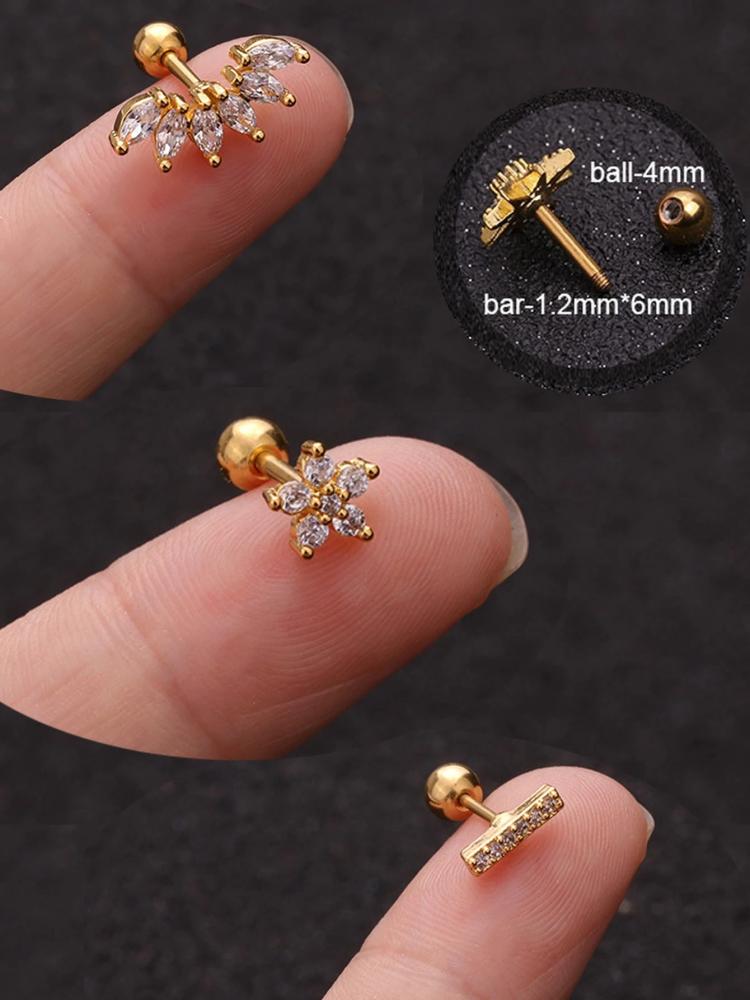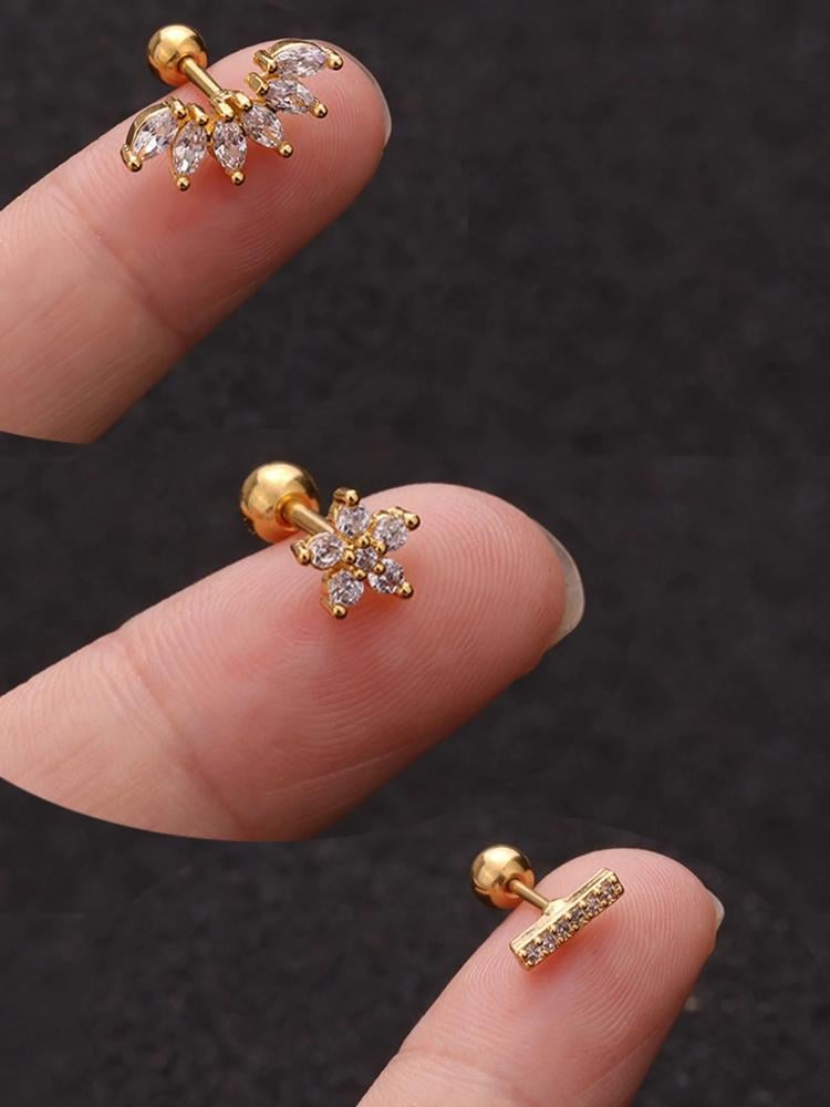 - اسم المنتج: 3 قطعات نساء اقراط مسماري لامع زركونيا