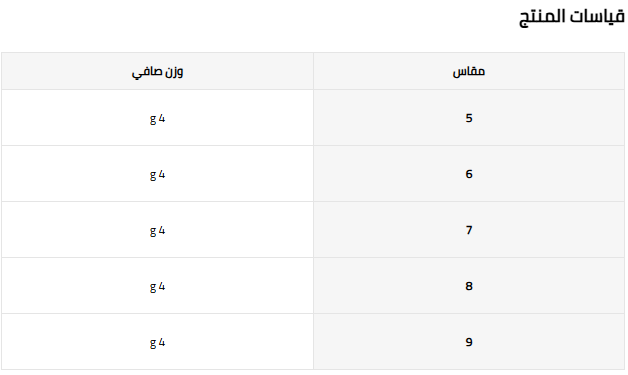 المقاسات: 5 – 6 – 7 – 8