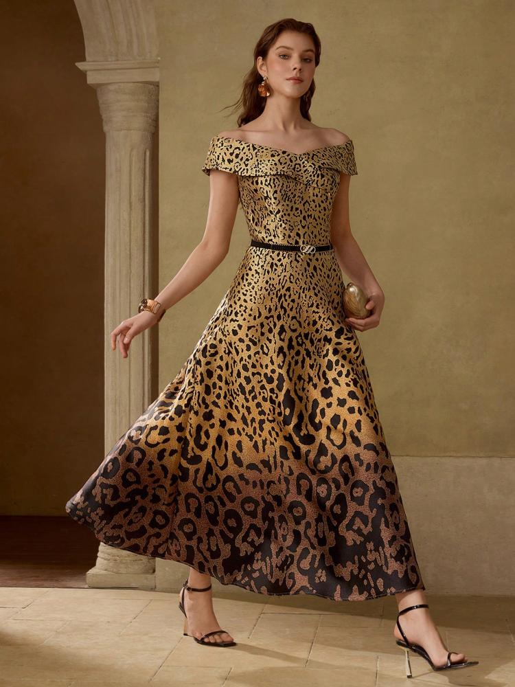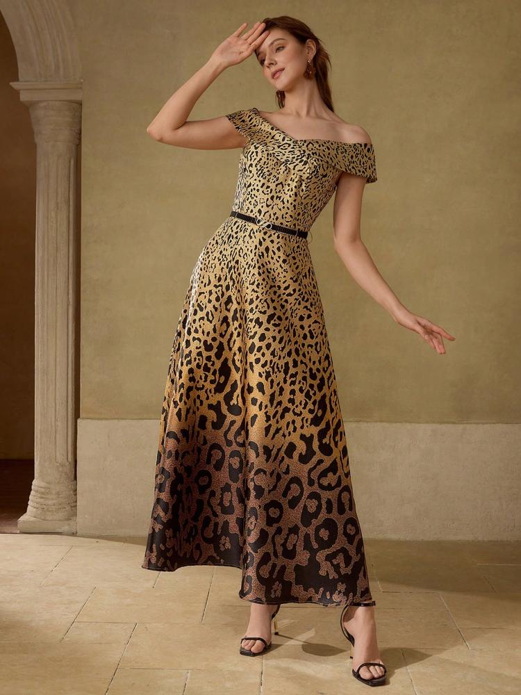 - اسم المنتج: فستان تايجر برقبة منحرفة بنمط الفهد