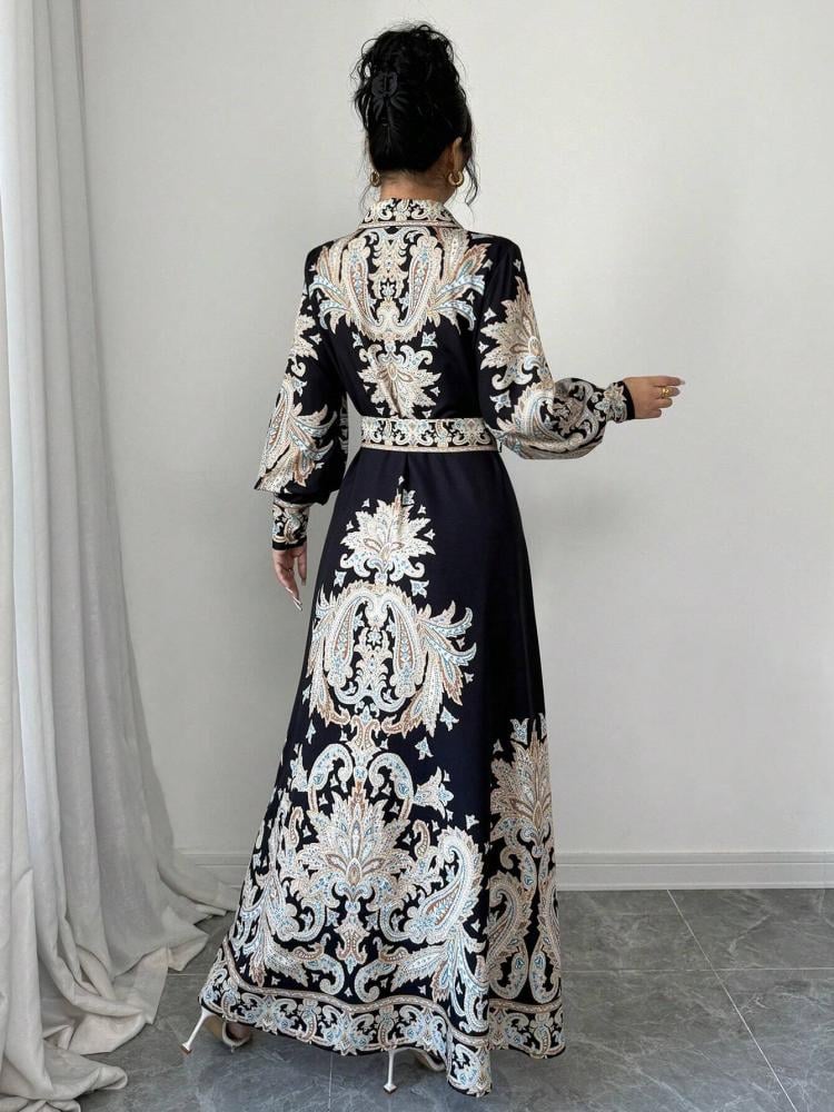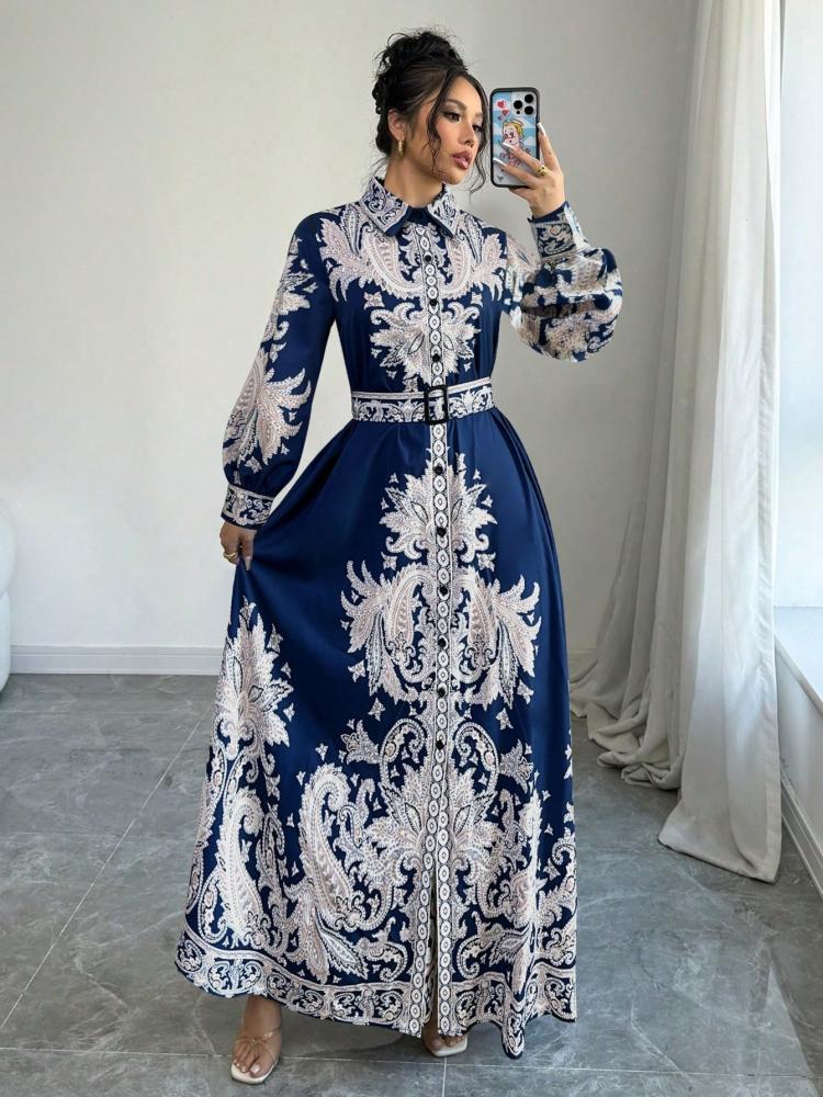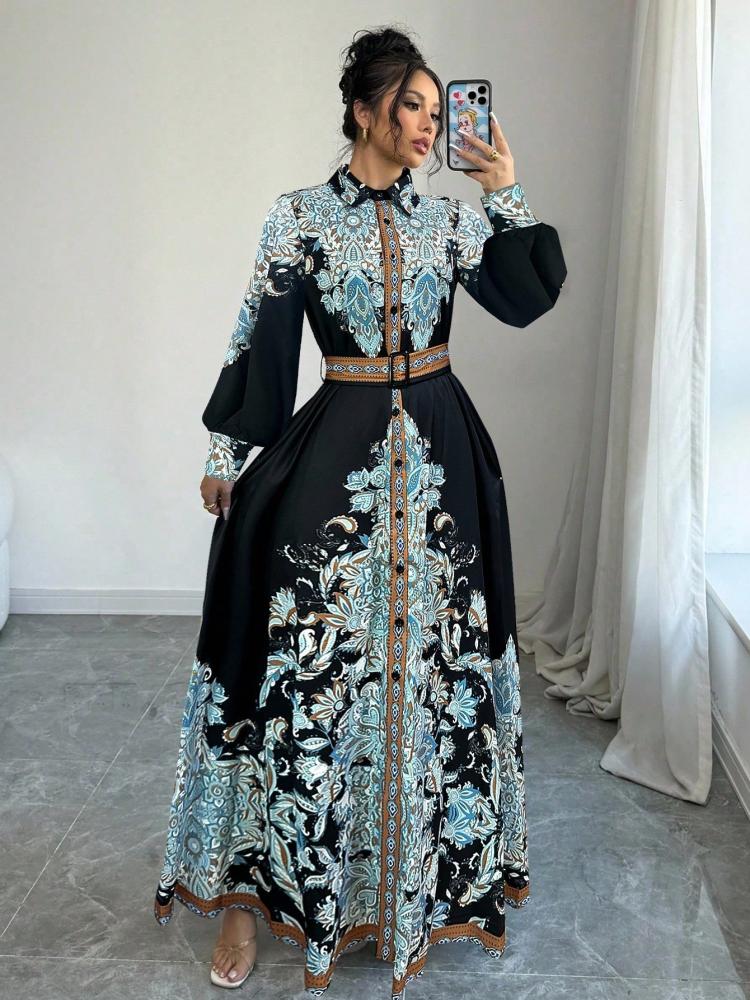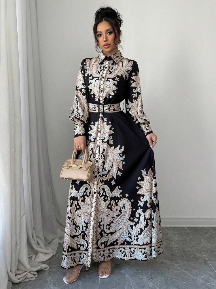 فستان قميص طويل بطبعة زهرية عتيقة، يتميز بتصميم عصري مع لمسة من الأناقة الكلاسيكية. يأتي باللون الأزرق، الأسود، المشمشي، وأيضًا متعدد الألوان، مما يتيح لك تنوعًا في اختياراتك. مثالي لإطلالة أنيقة في المناسبات اليومية أو المسائية.