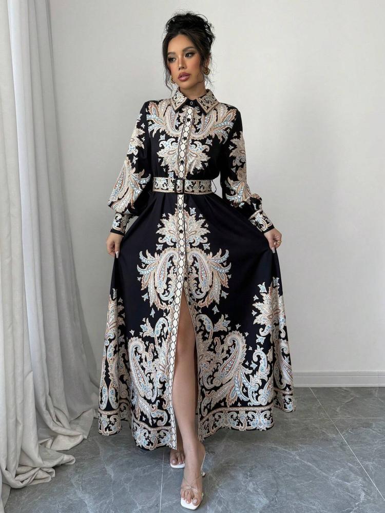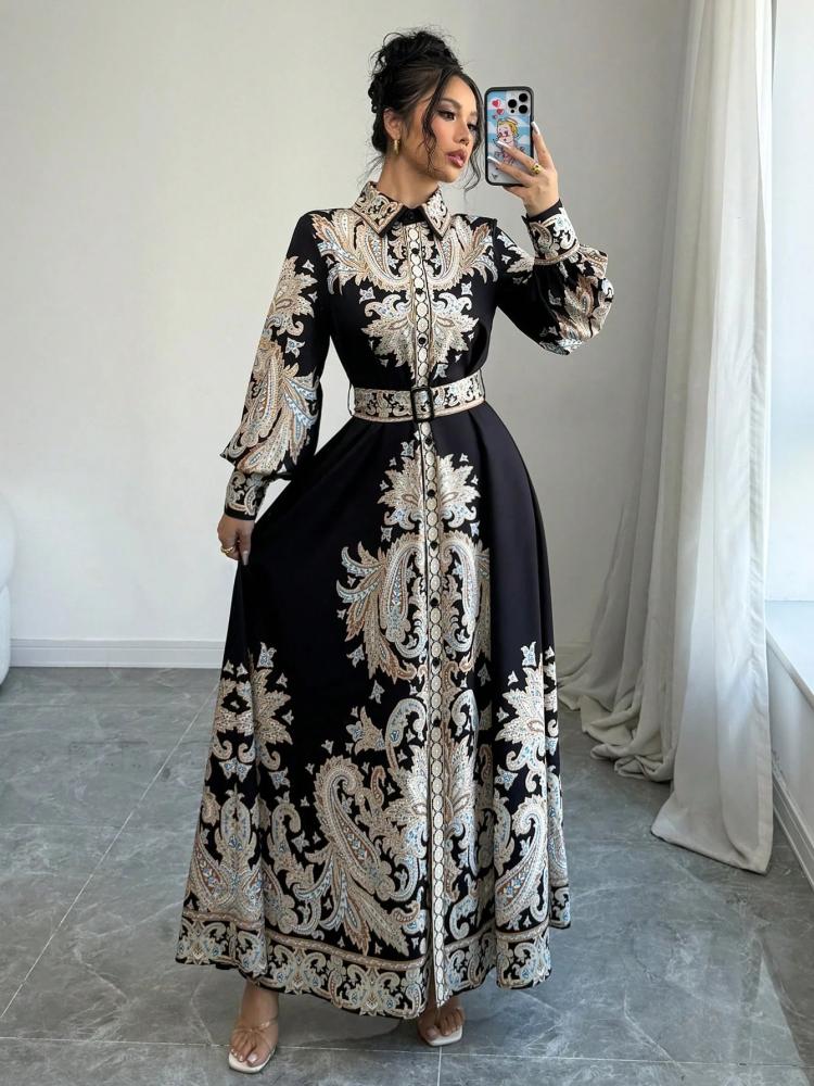 - فستان قميص طويل مناسب للمناسبات اليومية أو المسائية، مع لمسة من الفخامة.
