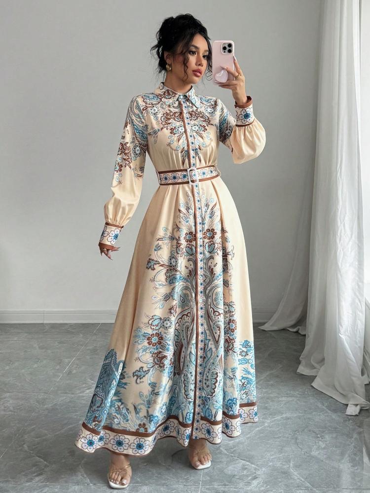 - المنتج: فستان قميص طويل بطبعة زهرية عتيقة